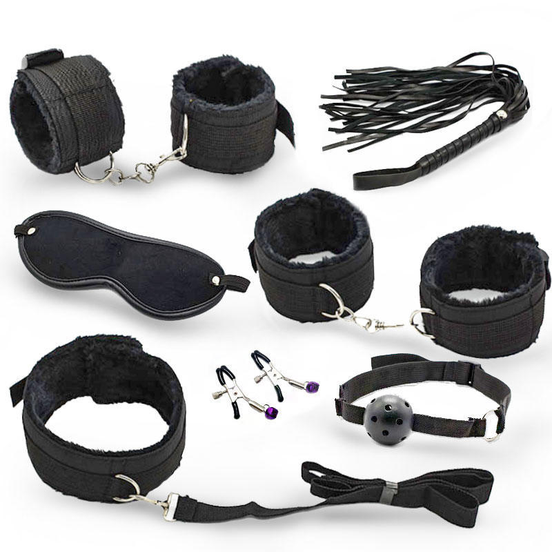 Kit de sujeción esposas tobillo puños Collar mordaza máscara látigo juguetes sexuales para adultos para parejas juguete erótico